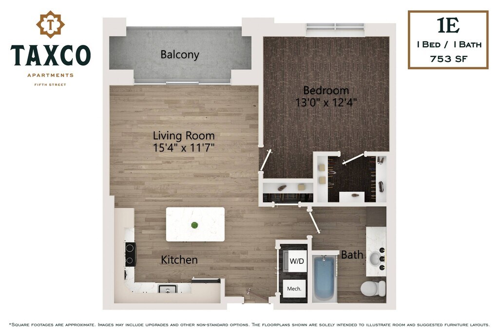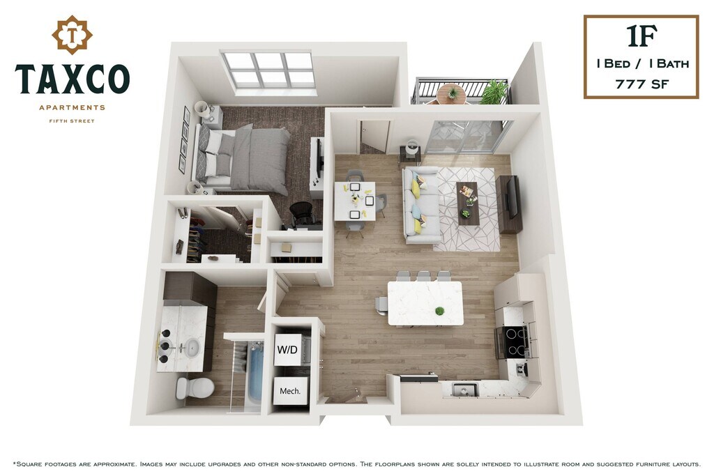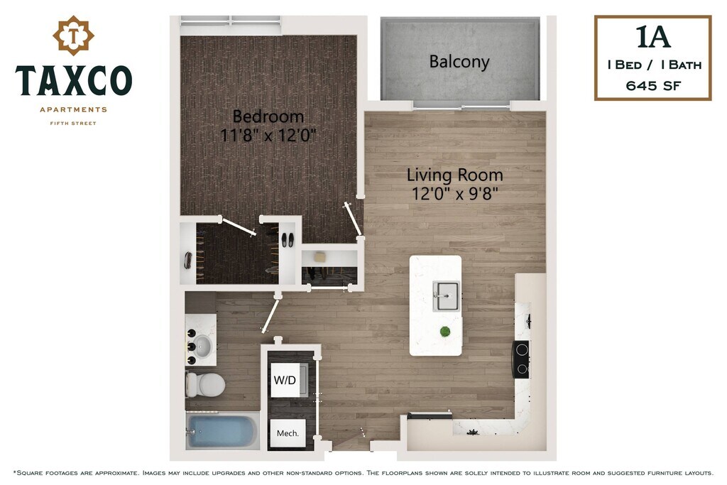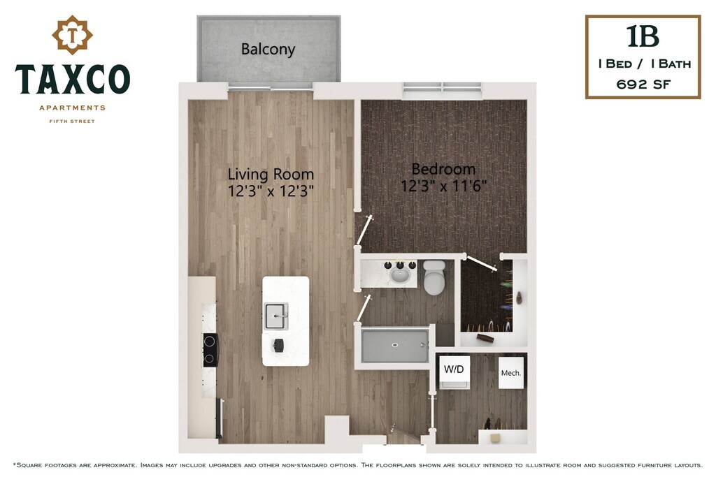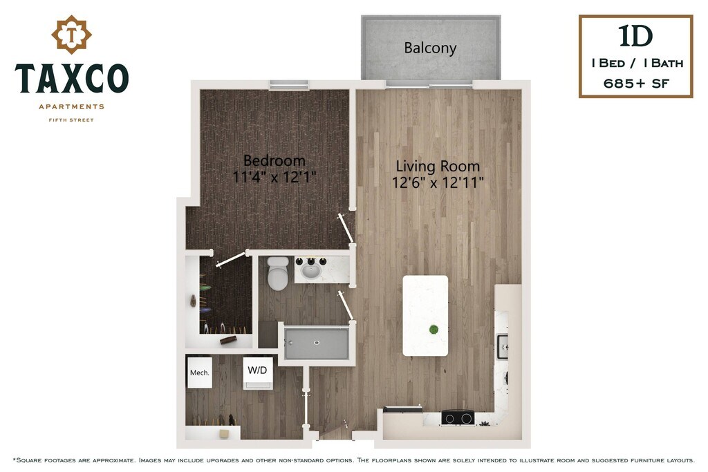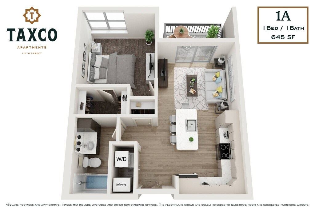 1 Dormitorio, 1 Baño, 645 pies²Disponible AhoraGalería del Modelo