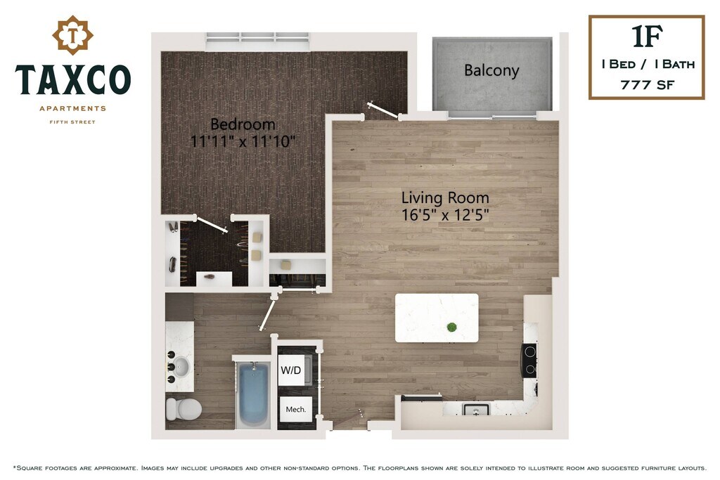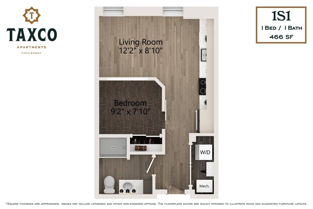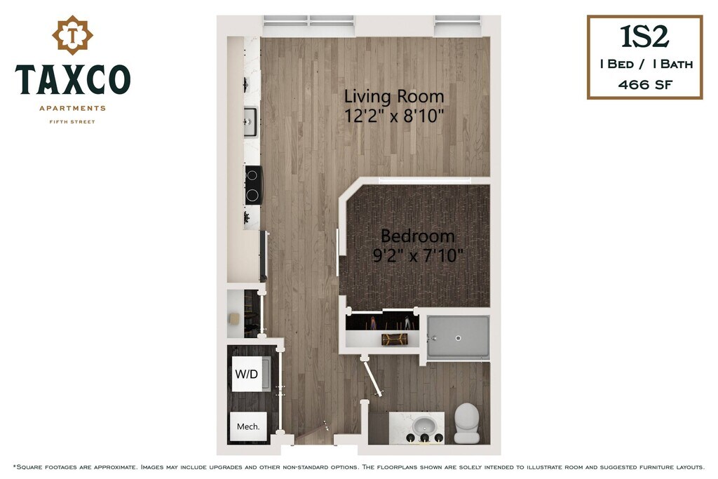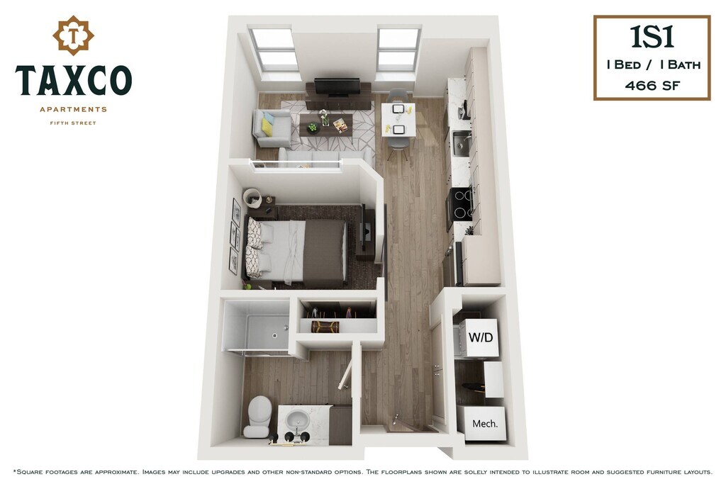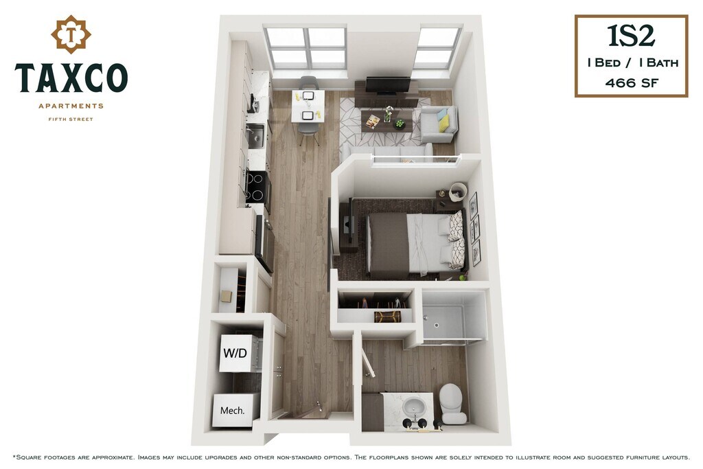 1 Dormitorio, 1 Baño, 466 pies²Galería del Modelo