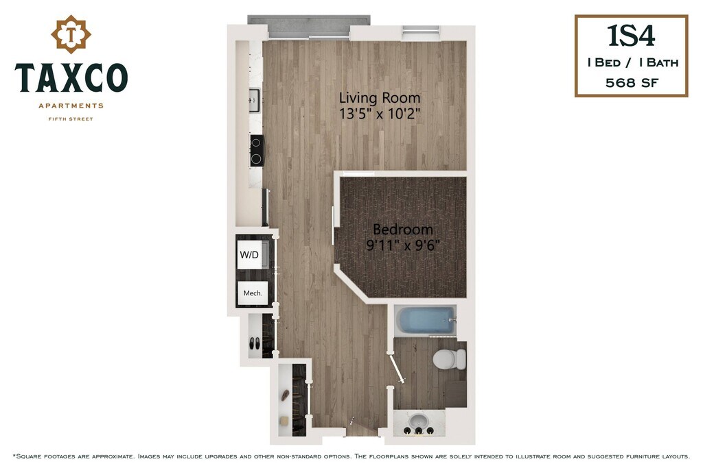 Modelo de apartamento: 1S5Desde $1,4701 Dormitorio, 1 Baño, 570 sq ftDisponible Ahora![]()