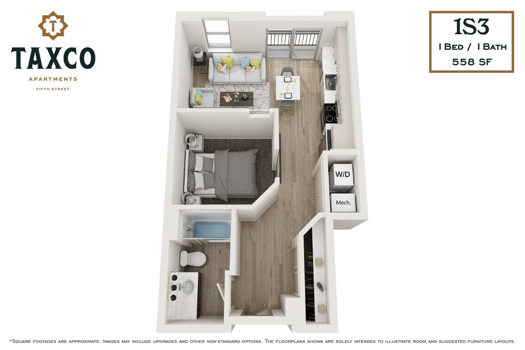 Modelo de apartamento: 1S3$1,3251 Dormitorio, 1 Baño, 558 sq ftNo Disponible![]()