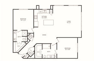 Modelo de apartamento: B22 Dormitorios, 2 Baños, 1116 sq ftDisponible Ahora![]()