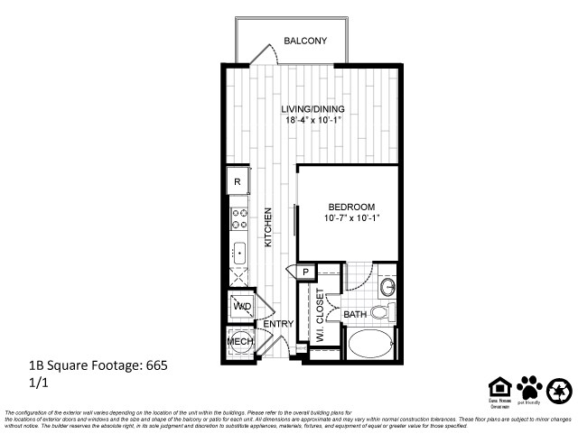1 Dormitorio, 1 Baño, 605 pies²Disponible AhoraGalería del Modelo