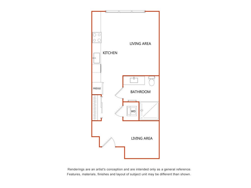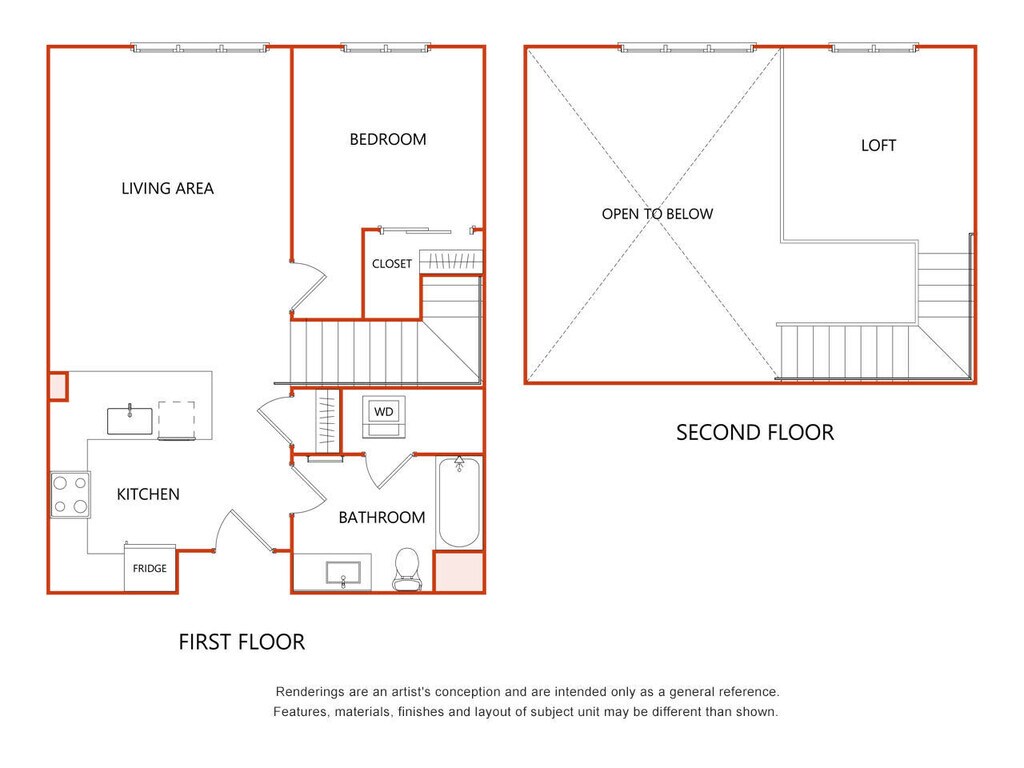 Modelo de apartamento: A1Desde $1,7101 Dormitorio, 1 Baño, 550-558 sq ftNo DisponibleA1 - Plano 1 B1 Loft