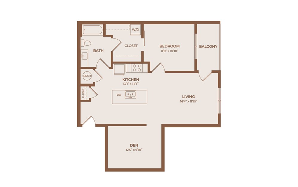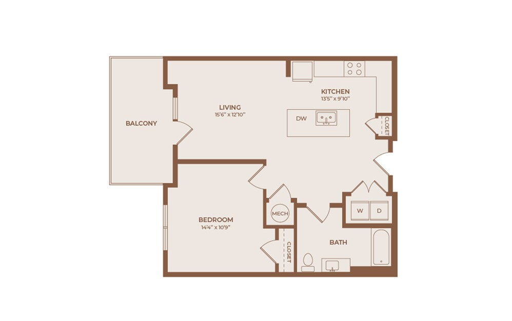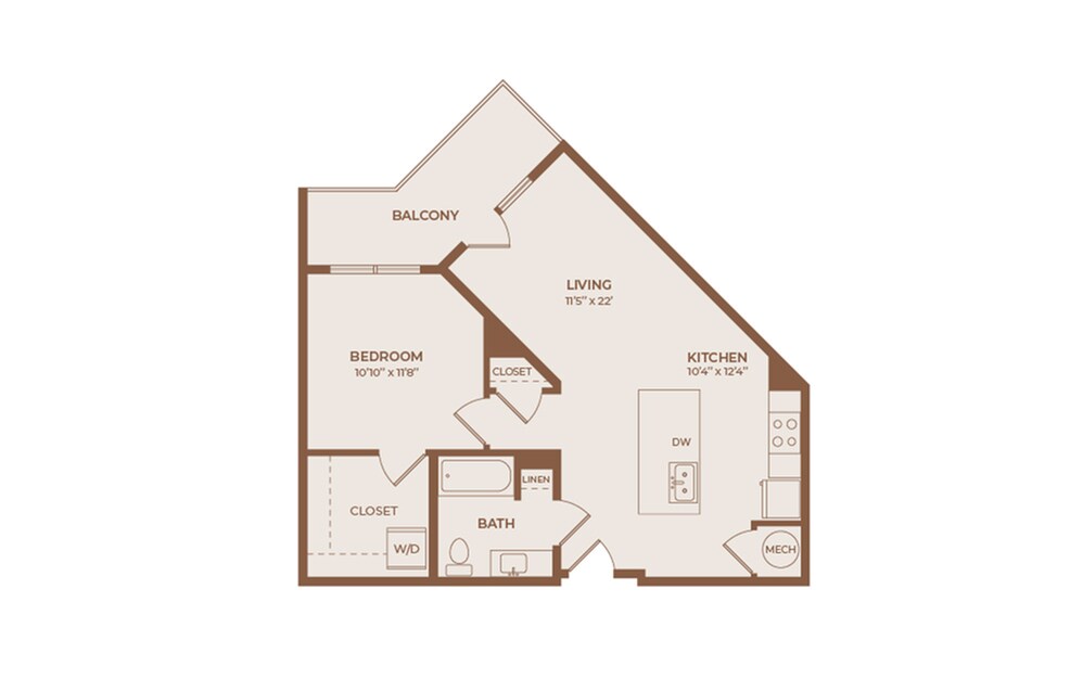 Current - Plano 1 Unidad de apartamento: 4371-111Modelo de apartamento: CurrentDesde $1,253Estudio, 1 Baño, 545 sq ftDisponible AhoraWave