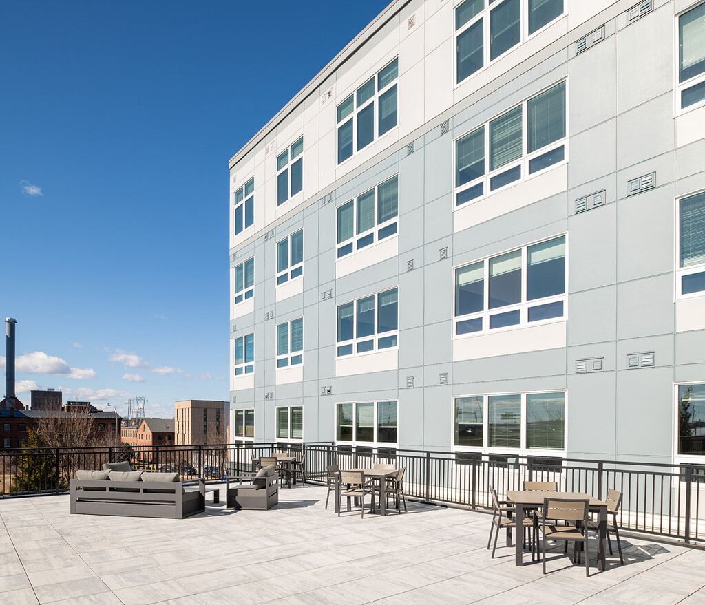 Tempo is a brand new mixed-use, mixed-income development in the Fox Point neighborhood. The community is comprised of 66 residential studios, one-bedroom, and two-bedroom rental apartments, resident amenity spaces, a childcare facility, and a ground floor storefront. The community blends market rate, middle-income, and affordable apartments, typical of many highly successful mixed-income developments that support economic development and anchor Innovation Districts. The childcare facility and additional storefront at Tempo, along Alves Way and City Walk, will play a role in making adjacent South Main Street – long a high-speed, auto-oriented corridor – into an active and pedestrian-friendly piece of the Innovation District and Fox. The community is located directly adjacent to I-195, is well-served by a number of local bus routes, and abuts the popular City Walk bicycle and pedestrian path.