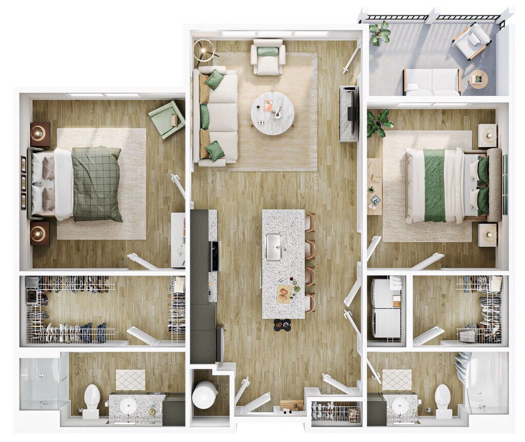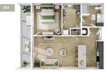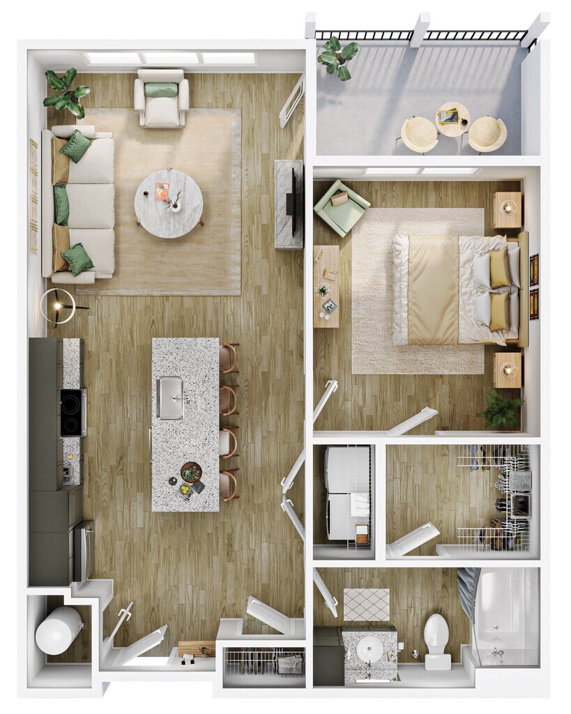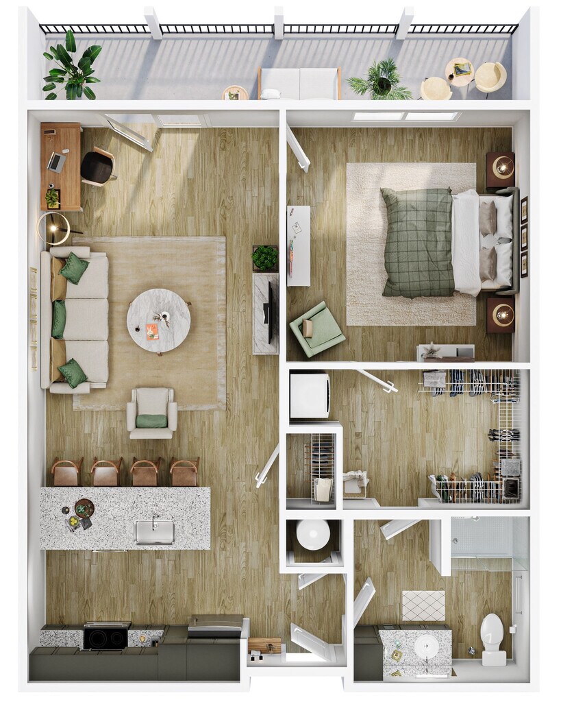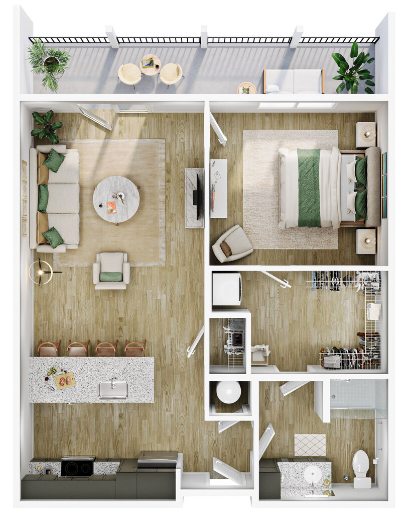 1 Dormitorio, 1 Baño, 822 pies²Disponible AhoraGalería del Modelo