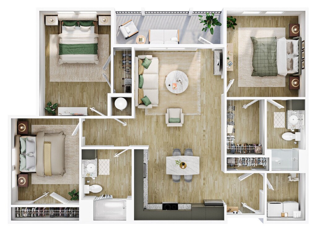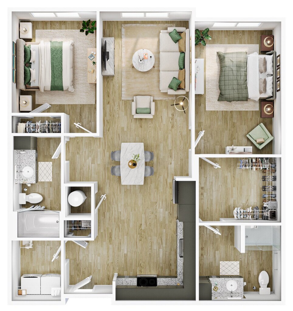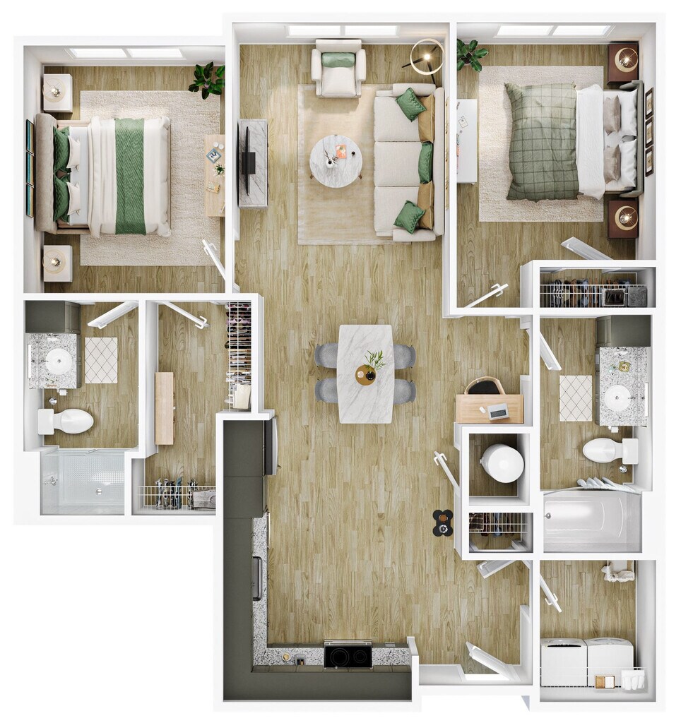 1 Dormitorio, 1 Baño, 822 pies²Disponible AhoraGalería del Modelo