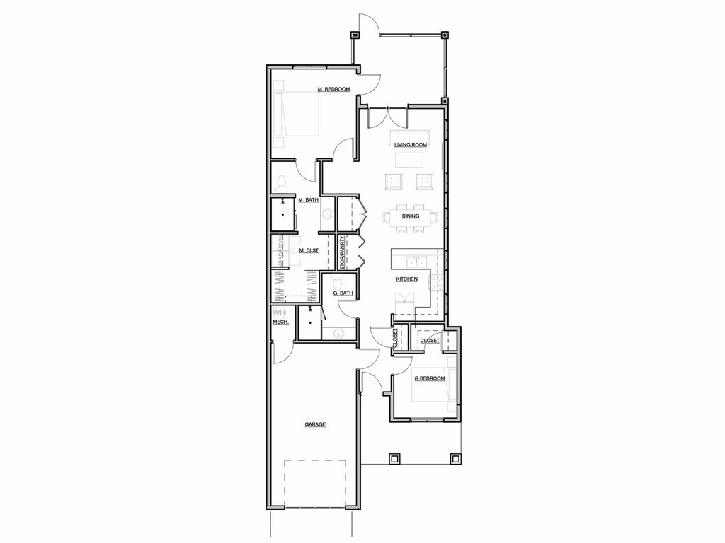 1 Dormitorio, 1 Baño, 700 pies²Galería del Modelo