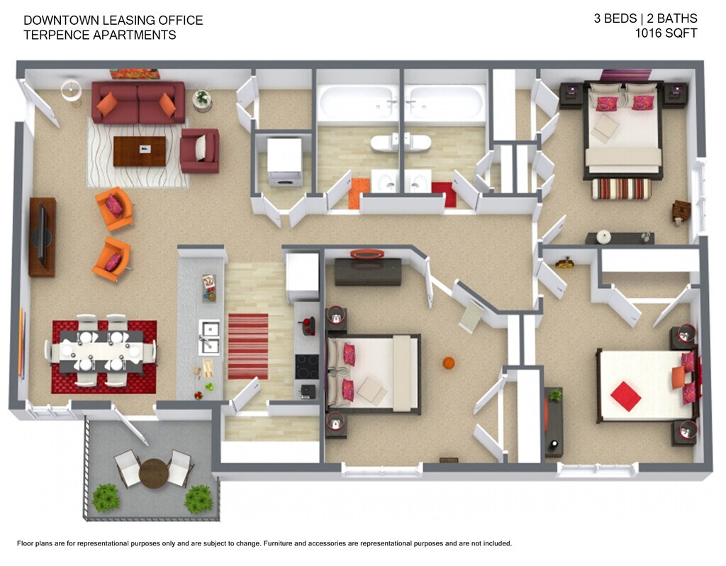 Modelo de apartamento: Three Bedroom - waitlist3 Dormitorios, 2 Baños, 1016 sq ftNo DisponibleThree Bedroom - waitlist - Plano 1