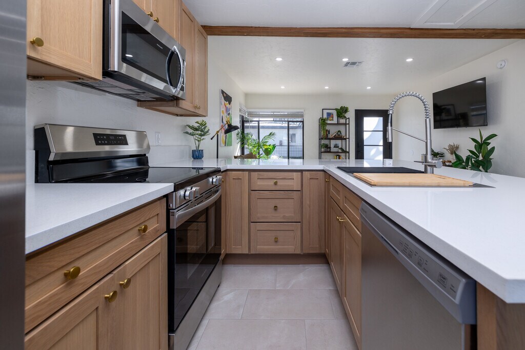 Apartment Rates and Information: -2 bed,1 bath $1800/month: $1800 security deposit ($250 non refundable) -1 Bed,1 Bath $1400/month: $1400 security deposit ($200 non refundable) 12 month lease term -Application fee: $35 per person to be included on lease paid through Zelle Tenants pay for water/sewer, electricity, and internet. Trash/recycling service is complimentary. - Electricity provider: TEP (estimate at $80/month) - Water provider: City of Tucson (estimate $50/month) Newly renovated apartments: -Carpet-free -Private fenced yards -Full-size kitchen and appliances (including dishwasher and garbage disposal) -In-unit washer and dryer -Keyless entry, and air conditioning. -Covered parking is included, each space features an electric car charging station. Apartments are not furnished. Apartments are non-smoking. Community Amenities: -Pool and outdoor lounge area -BBQ grill with outdoor seating area -Bike racks -Emergency maintenance services -Close proximity to the University of Arizona, El Con Mall, grocery shopping, restaurants, Himmel Park and Library as well as Reid Park and Zoo Pet Policy: Apartments are pet-friendly up to two pets. Tenants must register pets with management before pet move-in and additional fees for pets apply: - Additional $200 non-refundable pet deposit - Pet rent: $25/month/pet ($40/month for two pets)