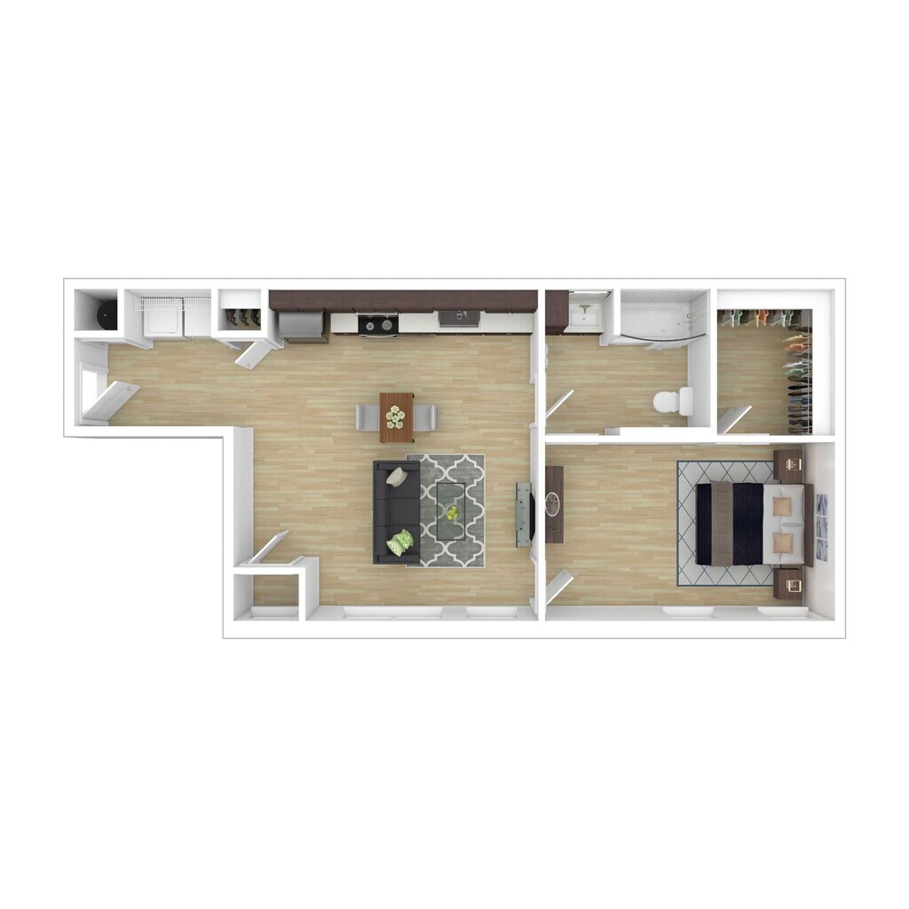 1 Dormitorio, 1 Baño, 692 pies²Disponible AhoraEl más grandeEsta opción tiene las unidades más grandes para este modeloGalería del Modelo