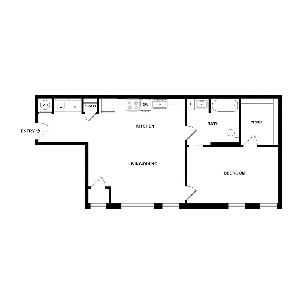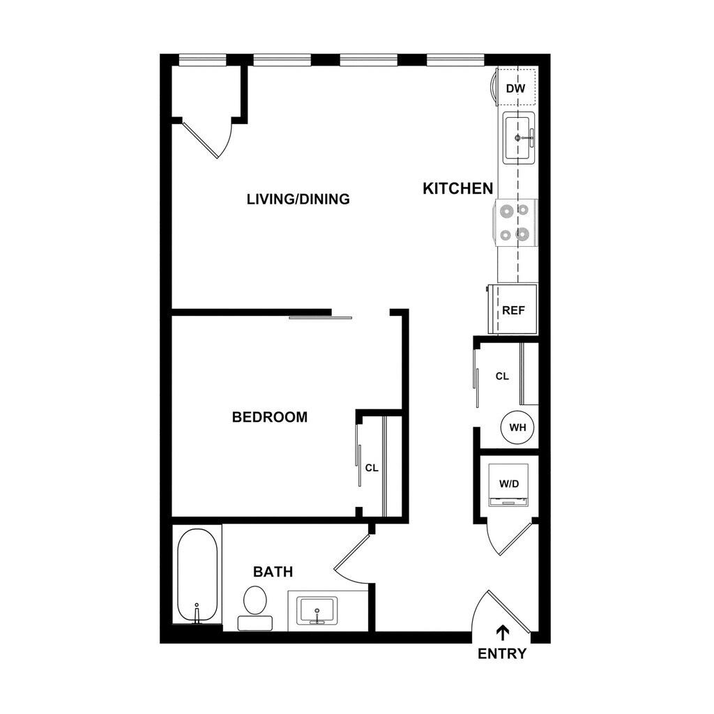 1 Dormitorio, 1 Baño, 515 pies²Disponible January 15, 2026Galería del Modelo
