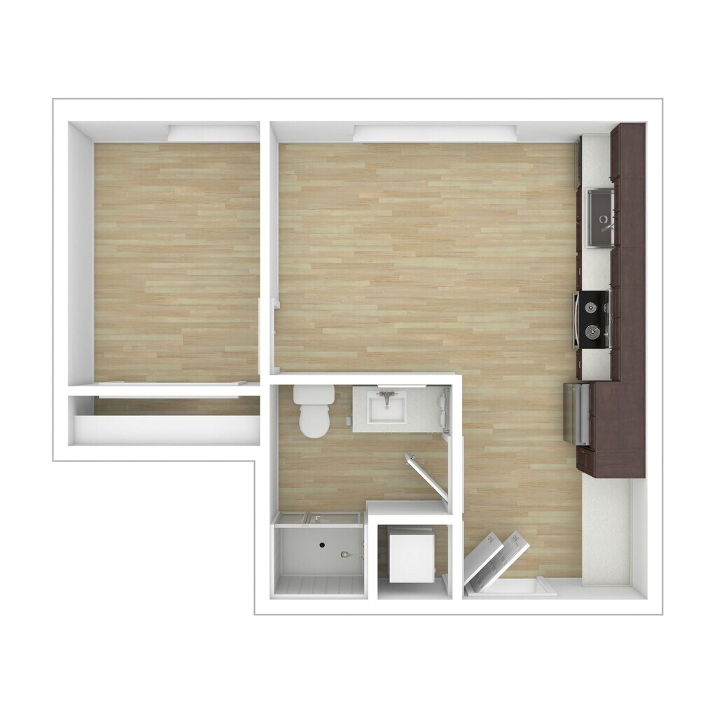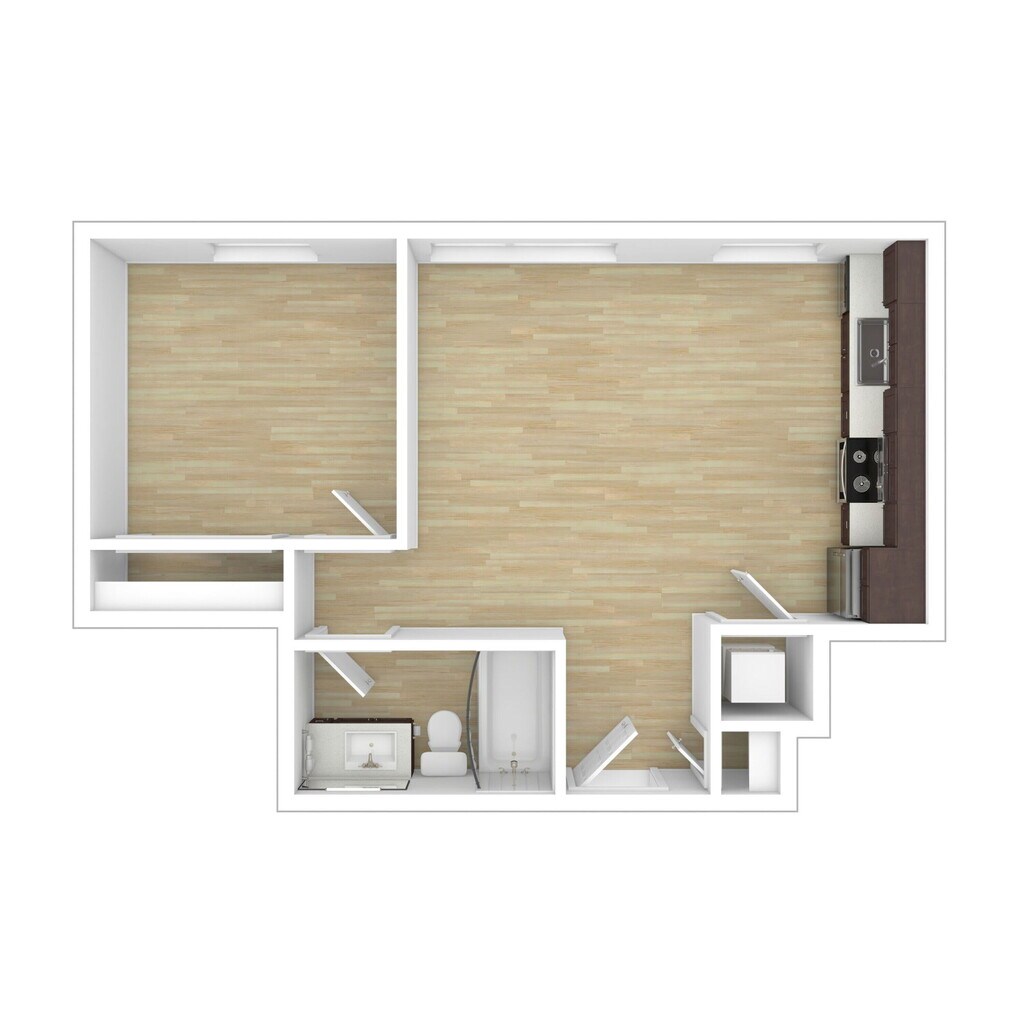 Modelo de apartamento: Studio Rent & Income RestrictiDesde $1,250Estudio, 1 Baño, 364 sq ftDisponible March 2, 2026![]()