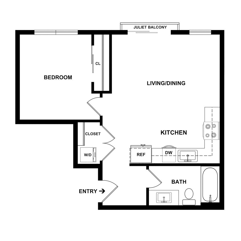 1 Dormitorio, 1 Baño, 528 pies²Disponible AhoraGalería del Modelo