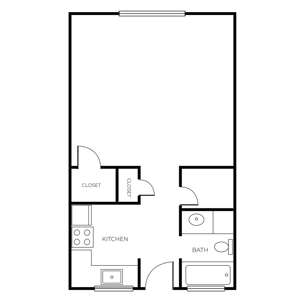 Estudio, 1 Baño, 560 pies²Disponible AhoraGalería del Modelo