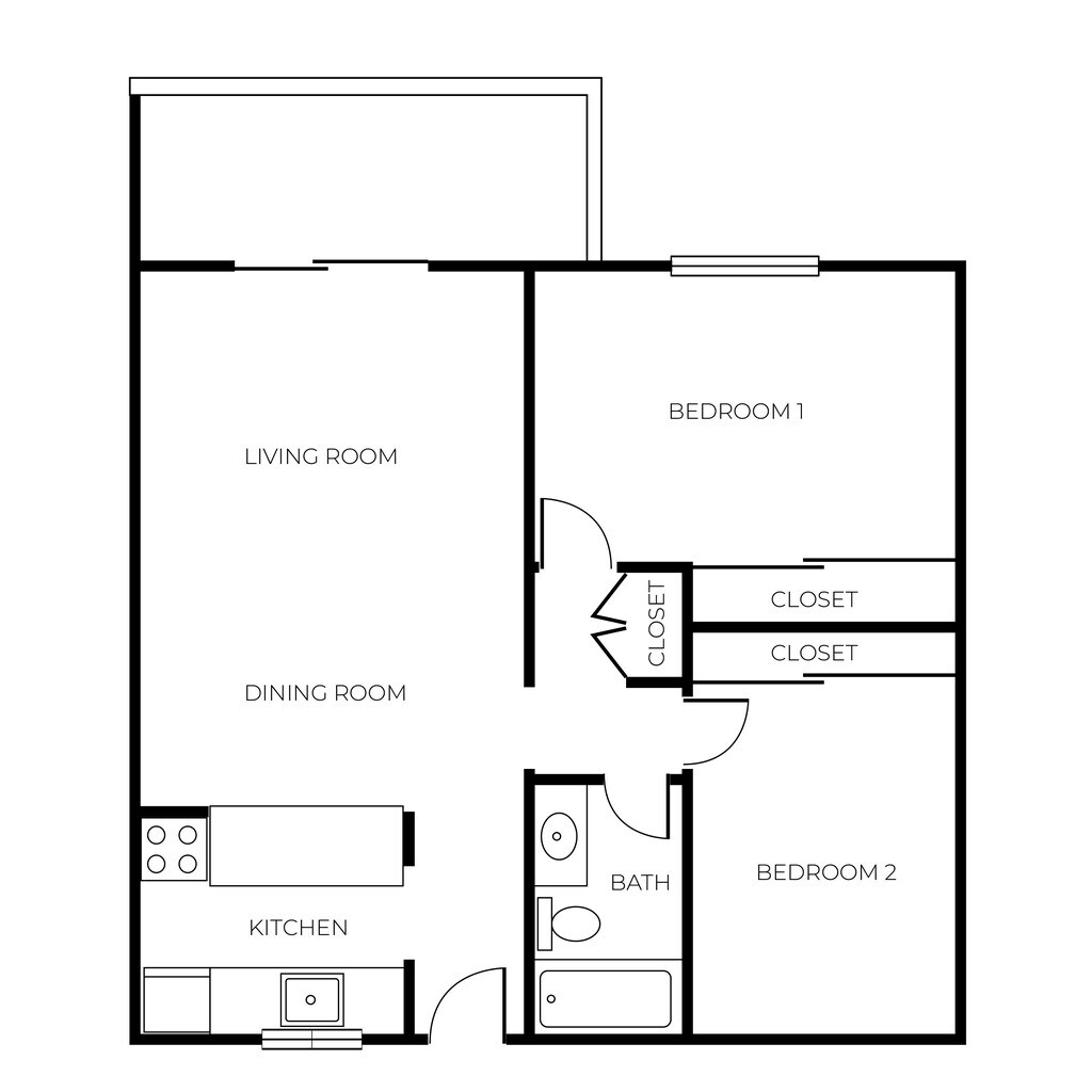 2 Dormitorios, 1 Baño, 773 pies²Disponible AhoraEl más grandeEsta opción tiene las unidades más grandes para este modeloGalería del Modelo