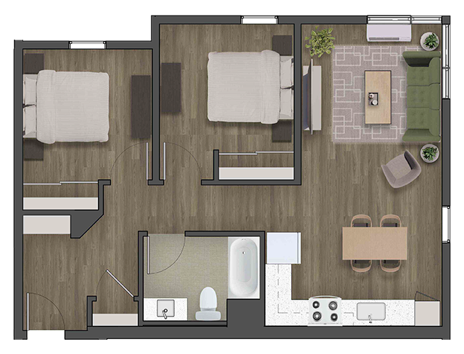 - 2 Dormitorios- Two Bed One Bath- $1,6142 Dormitorios, 1 BañoDisponible Ahora- Galería del Modelo- Planos- Detalles de Diponibilidad- Precio - Fecha Disponibilidad - Unidad - Depósito - $1,614 - Disponible Ahora - 301. - $400 - $1,614 - Disponible Ahora - 462. - $400 - $1,614 - November 9, 2025 - 358. - $400 - Características y Comodidades de Modelo- Características- Aire acondicionado