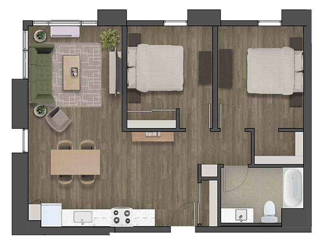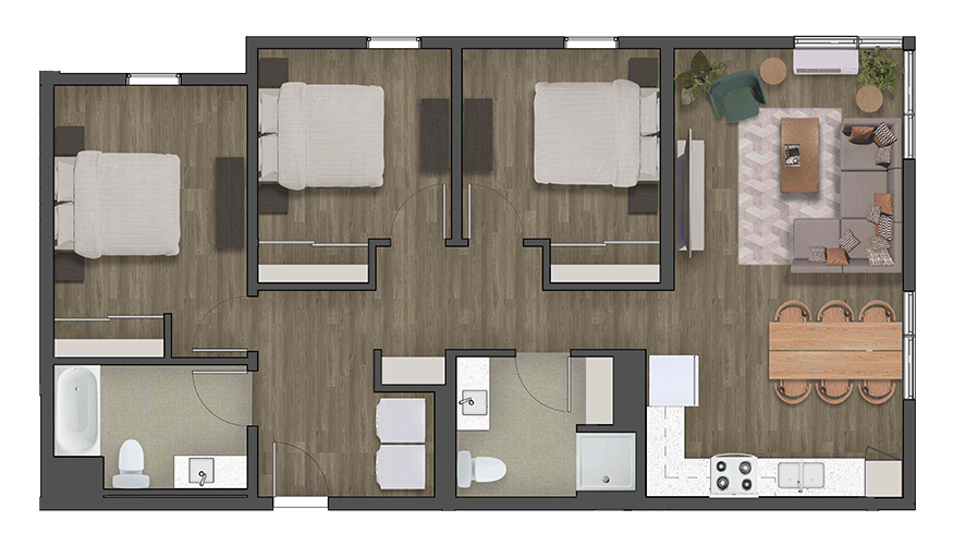 - 4 Dormitorios- Four Bed Two Bath4 Dormitorios, 2 Baños- Galería del Modelo- Planos- Detalles de Diponibilidad- Fecha Disponibilidad - Unidad - Llamar para disponibilidad - Four Bed Two Bath - Características y Comodidades de Modelo- Características- Aire acondicionado