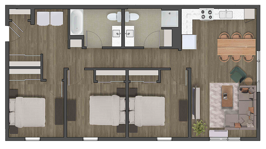- 3 Dormitorios- Three Bed Two Bath3 Dormitorios, 2 Baños- Galería del Modelo- Planos- Detalles de Diponibilidad- Precio - Fecha Disponibilidad - Unidad - $842 - Llamar para disponibilidad - Three Bed Two Bath - Características y Comodidades de Modelo- Características- Aire acondicionado
