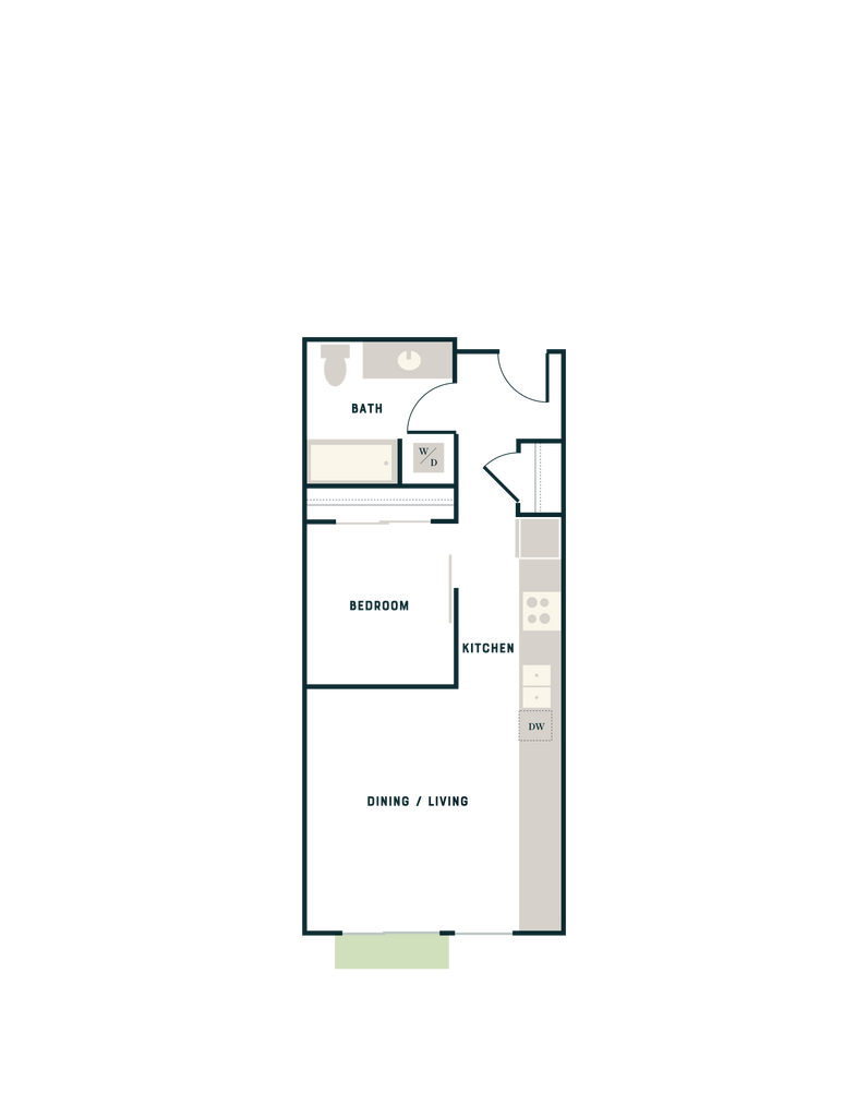 Studio, 1 Bath - West Apt A - Plano 1 Unidad de apartamento: West-545Modelo de apartamento: Studio, 1 Bath - West Apt ADesde $1,610Estudio, 1 Baño, 508 sq ftDisponible January 24, 2026Studio, 1 Bath - East Apt B