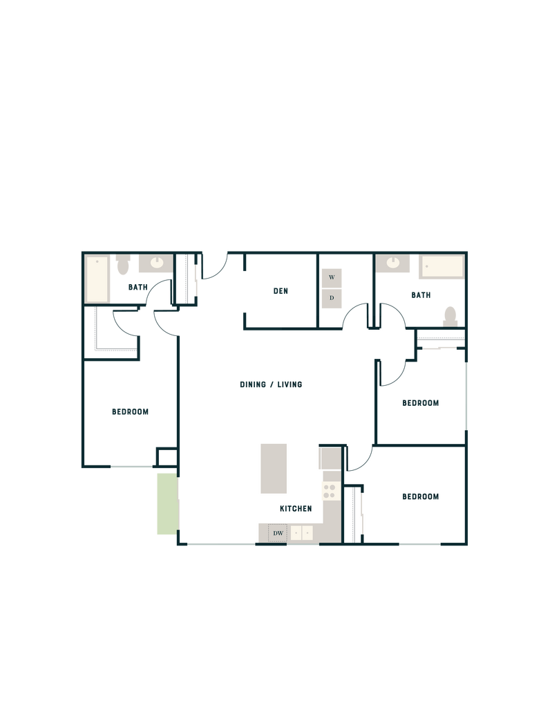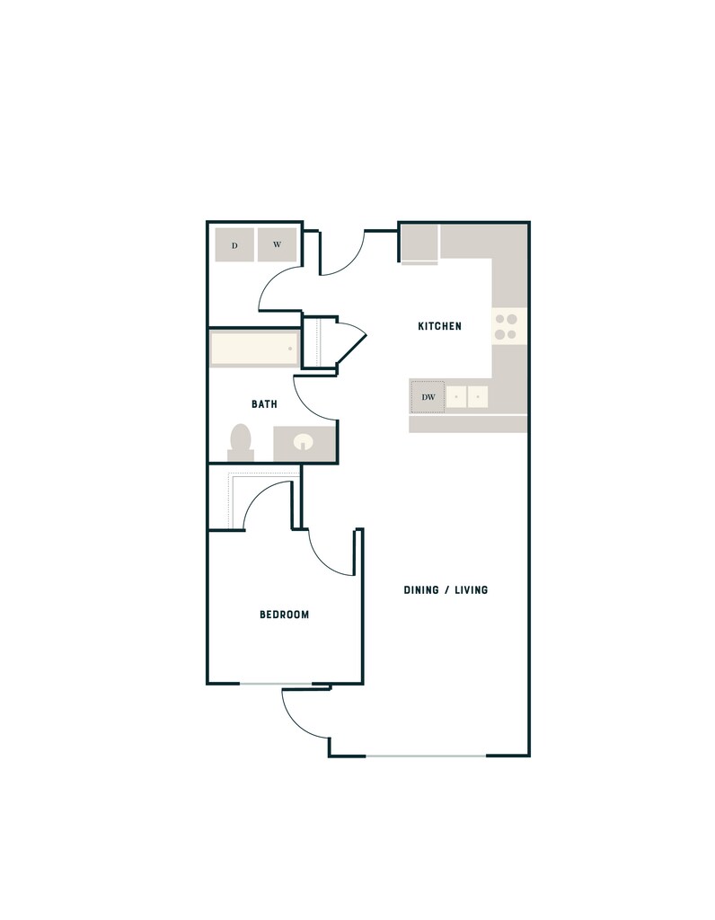 Modelo de apartamento: Open 1 Bed, 1 Bath - West Apt BDesde $1,8231 Dormitorio, 1 Baño, 588 sq ftDisponible Ahora![]()