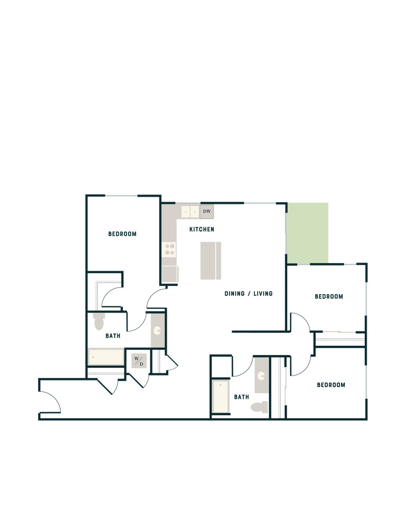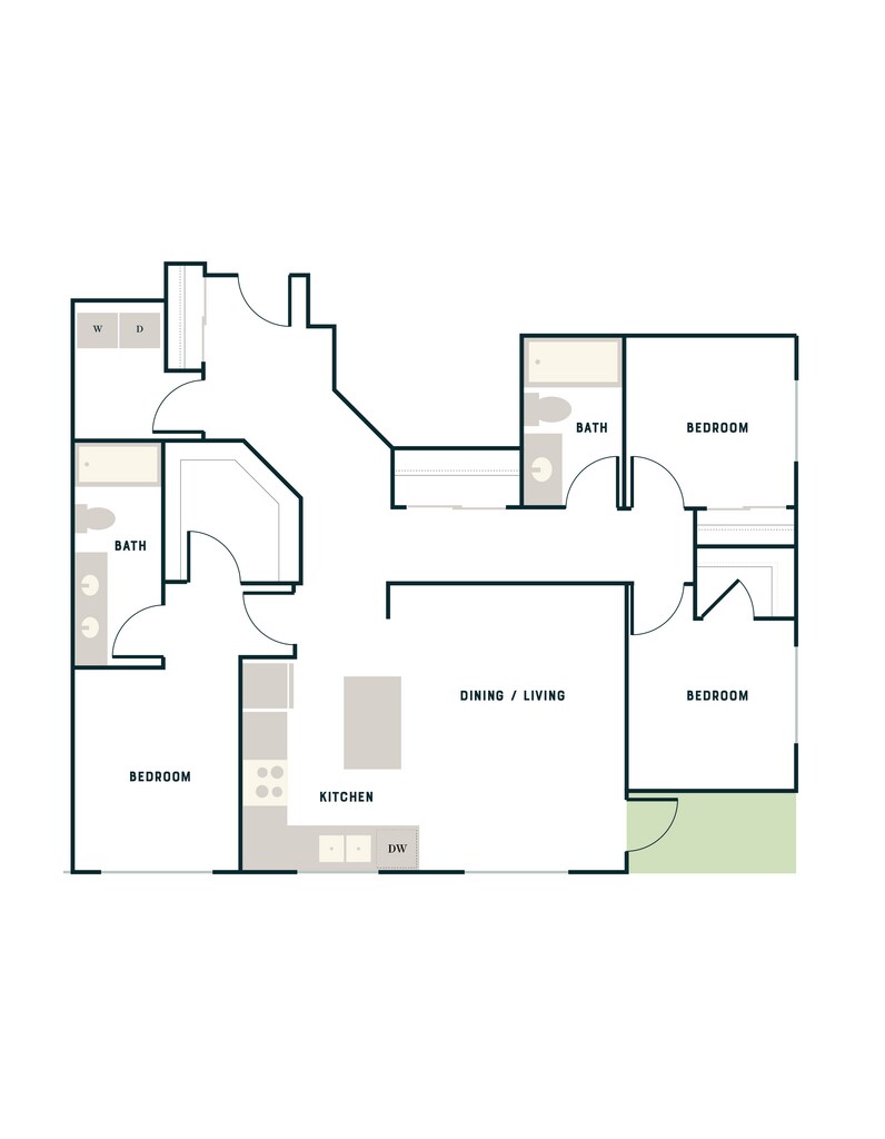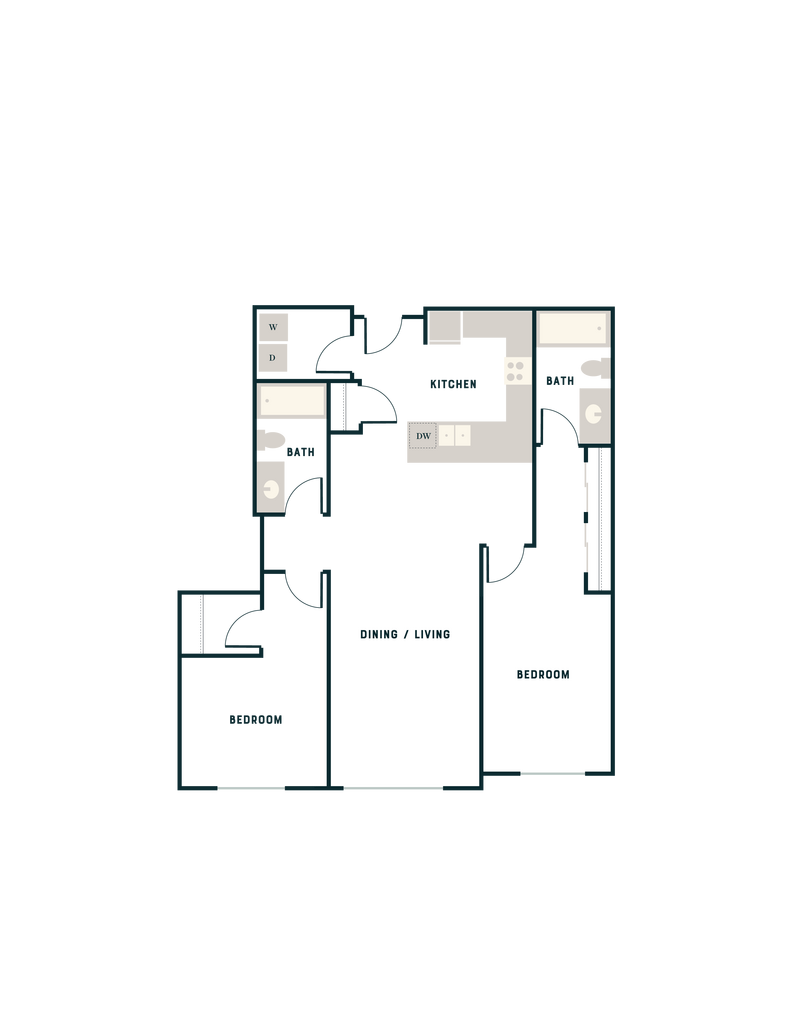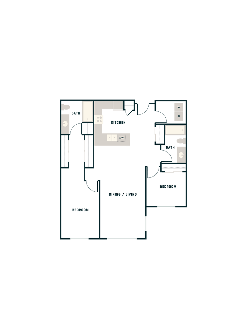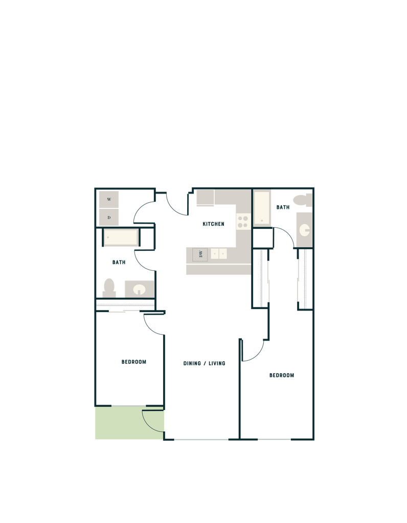 1 Dormitorio, 1 Baño, 773 pies²Disponible AhoraEl más grandeEsta opción tiene las unidades más grandes para este modeloGalería del Modelo