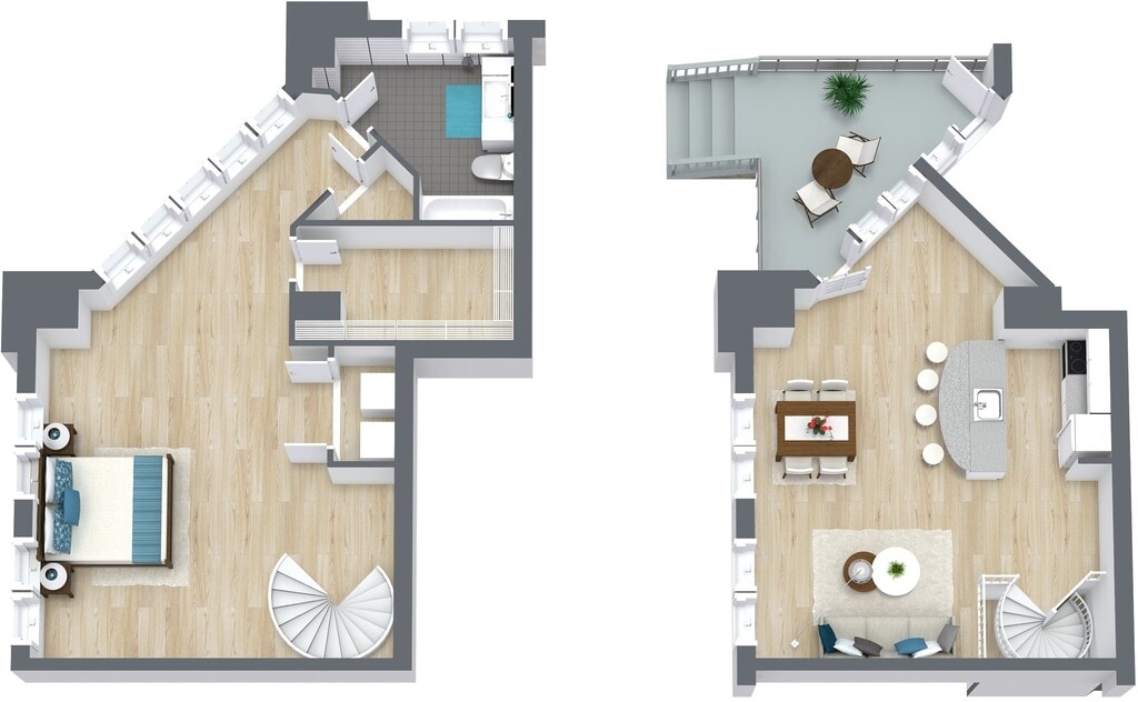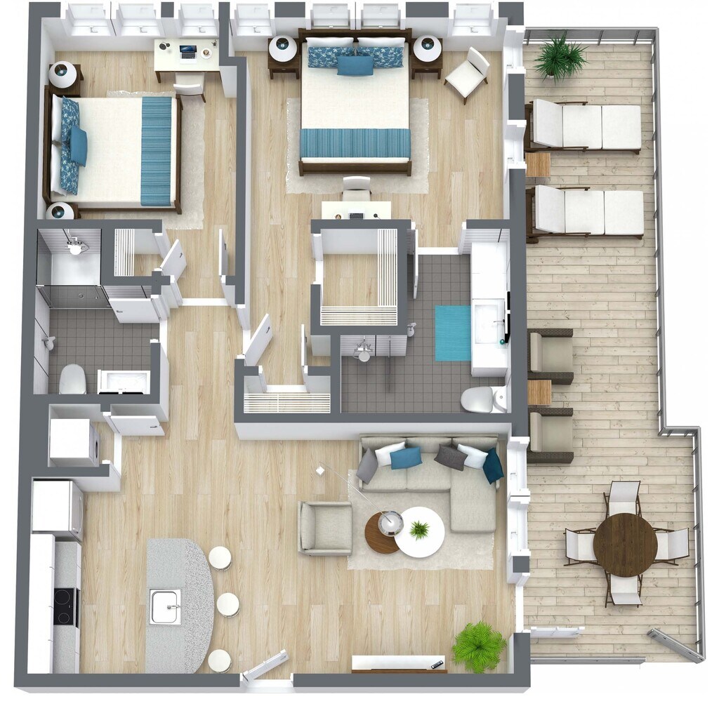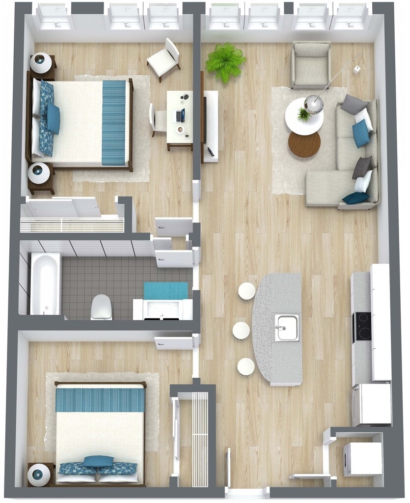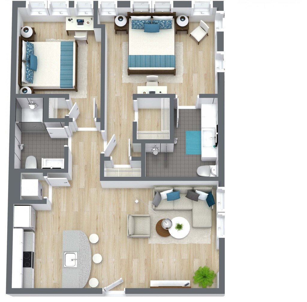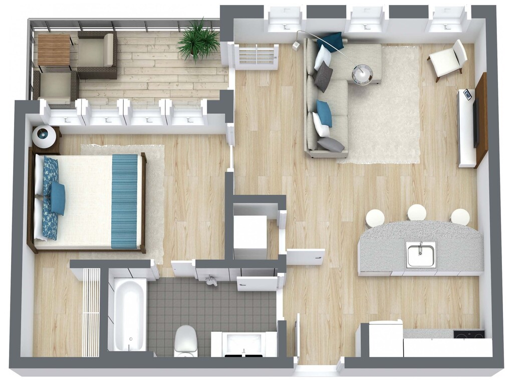 Modelo de apartamento: FloodwallDesde $1,6101 Dormitorio, 1 Baño, 527 sq ftNo Disponible![]()