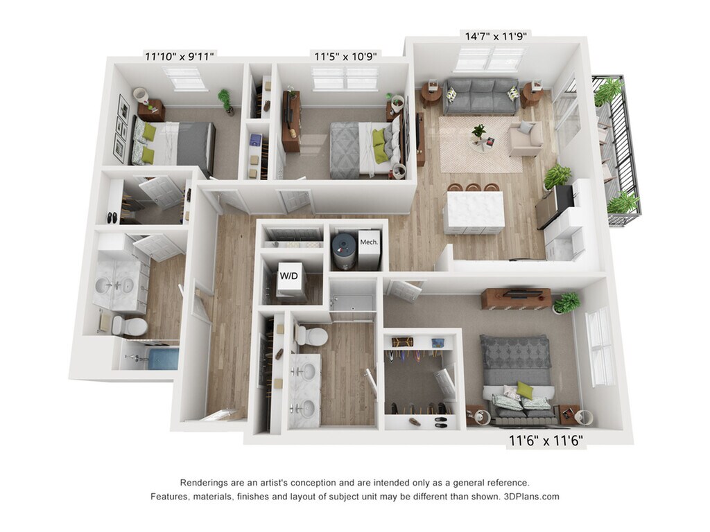 3-Bedroom 2-Bathroom | 1,342 sqft