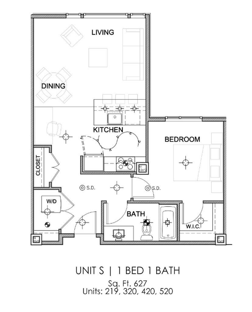 1 Dormitorio, 1 Baño, 627-735 pies²Disponible May 10Detalles de Diponibilidad