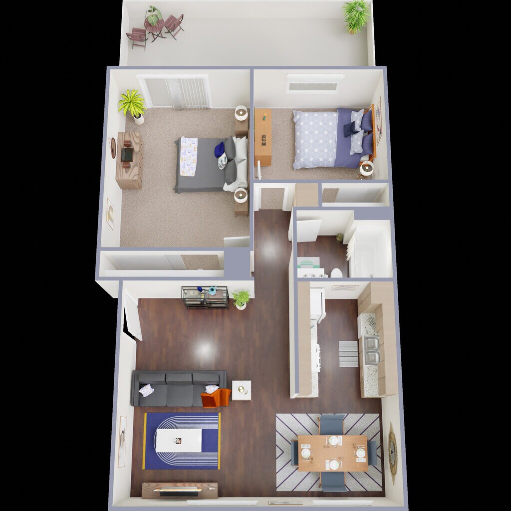 2 Dormitorios, 1 Baño, 864 pies²Disponible AhoraGalería del Modelo