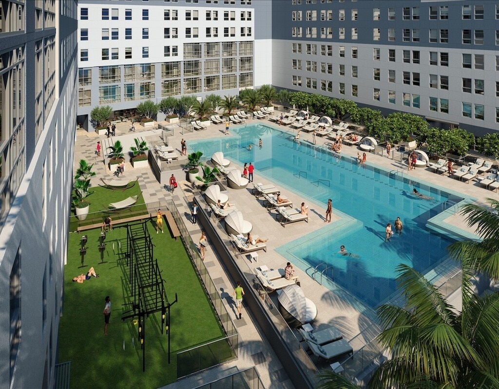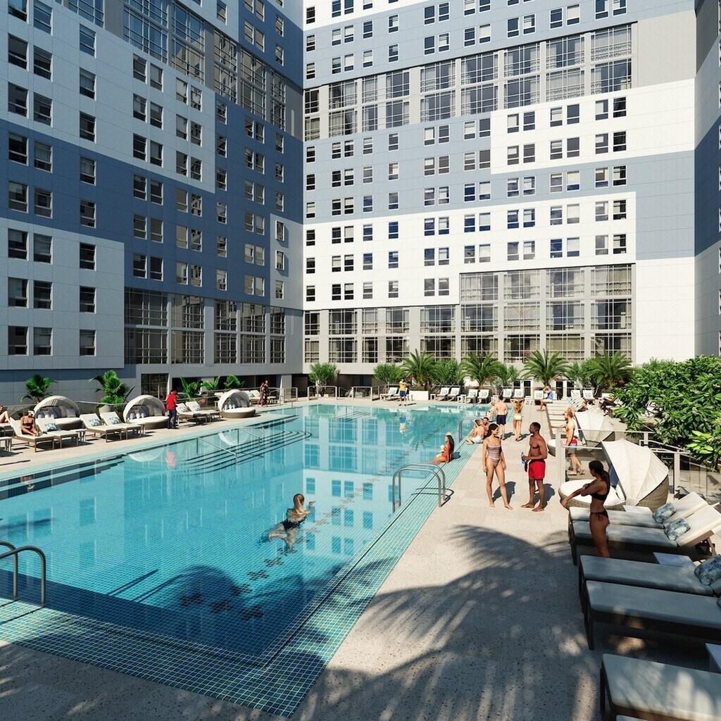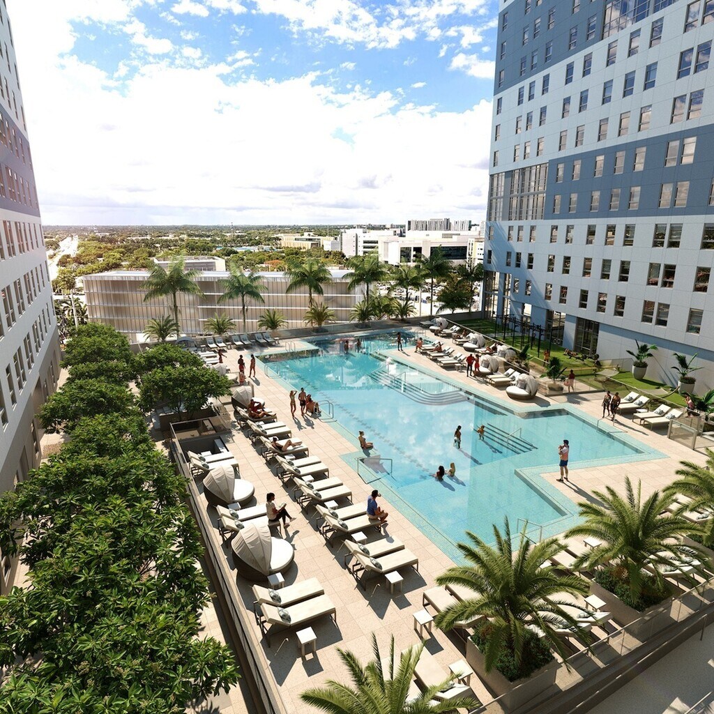 Terrazul ofrece una impresionante variedad de amenidades, entre ellas un gimnasio de alta tecnología, piscina al aire libre y solárium al atardecer, sala de estar, sala de conferencias y amplios espacios para estudios, sala de club, sala de juegos, parrillas para barbacoas, pista para correr, un parque/caminar para perros y mucho más. Cada plano de planta está amueblado con nuevos acabados modernos en nuestro alojamiento para estudiantes de Miami. No solo eso, sino que cada dormitorio tiene su propio baño, para que pueda personalizar su espacio y disfrutar de la privacidad cuando más lo desee.
