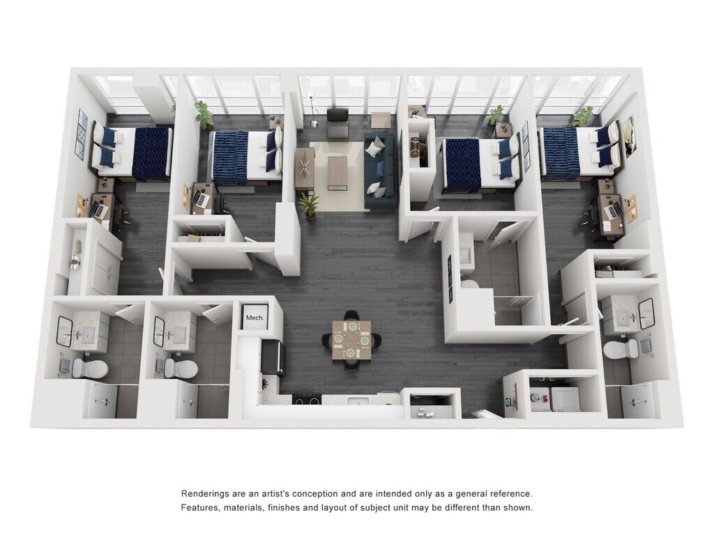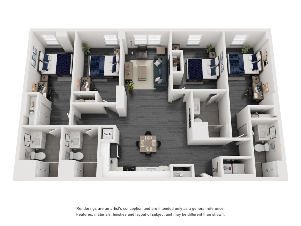 Modelo de apartamento: D14 Dormitorios, 4 Baños, 1524 sq ftNo Disponible![]()