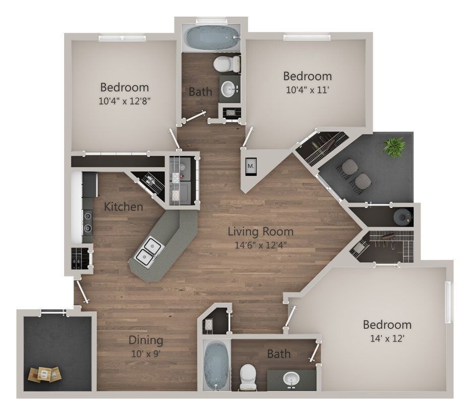 Modelo de apartamento: RomaDesde $9751 Dormitorio, 1 Baño, 669 sq ftDisponible AhoraLos planos de la planta son una interpretación artística. Todas las dimensiones son aproximadas. Los tamaños o el detalle del producto real y sus especificaciones pueden variar. No todas las características están disponibles en todos los hogares para rentar. Los precios y la disponibilidad están sujetos a cambios. El alquiler que se muestra es mensual. Se pueden aplicar ciertos cargos, por ejemplo, entrega de paquetes, recolección de basura, agua, servicios, etc. Depositos varian. Consulta a un representante para conocer detalles.