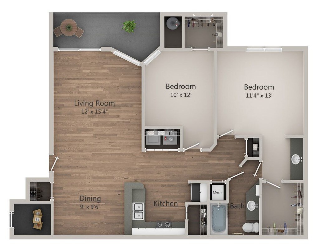 1 Dormitorio, 1 Baño, 769 pies²Disponible AhoraGalería del Modelo