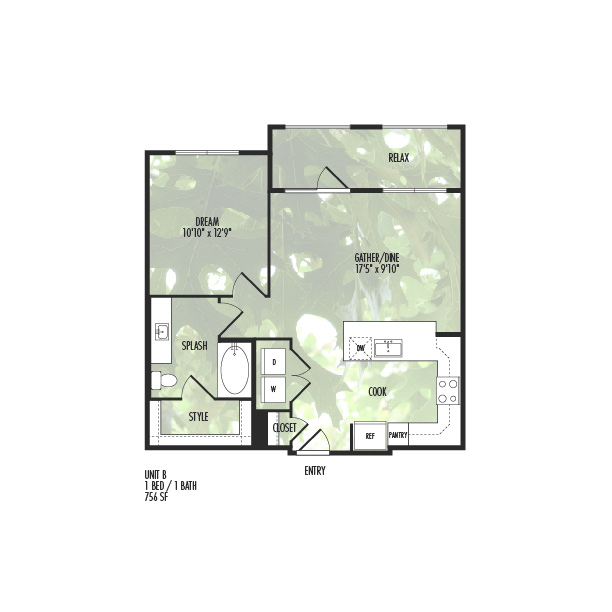 Modelo de apartamento: One Bedroom One BathroomDesde $1,4601 Dormitorio, 1 Baño, 756 sq ftDisponible December 1, 2025![]()
