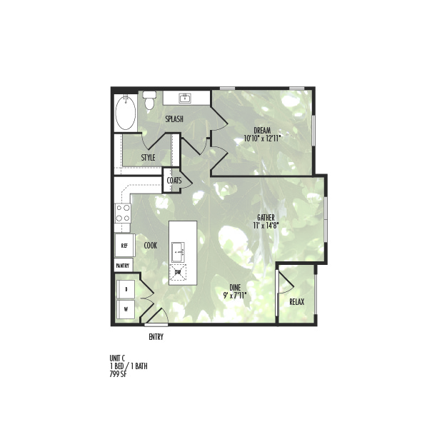1 Dormitorio, 1 Baño, 799 pies²Disponible Nov 8El más grandeEsta opción tiene las unidades más grandes para este modeloGalería del Modelo