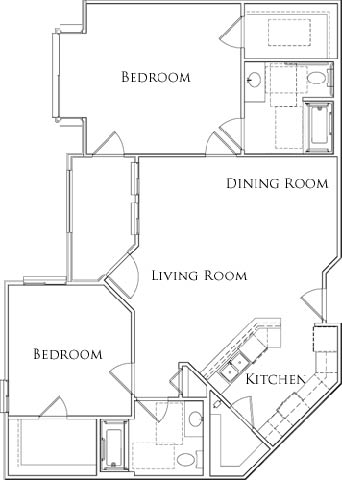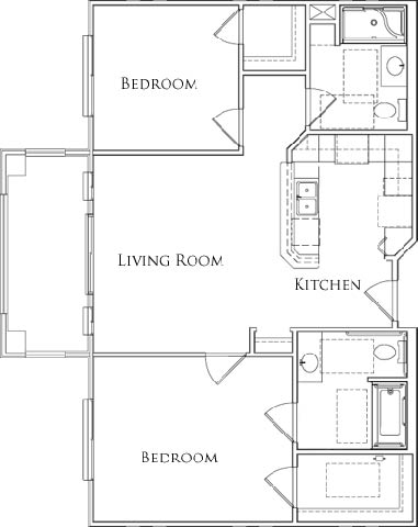 Modelo de apartamento: Unit 1X$2,2401 Dormitorio, 1 Baño, 826 sq ftDisponible Ahora![]()