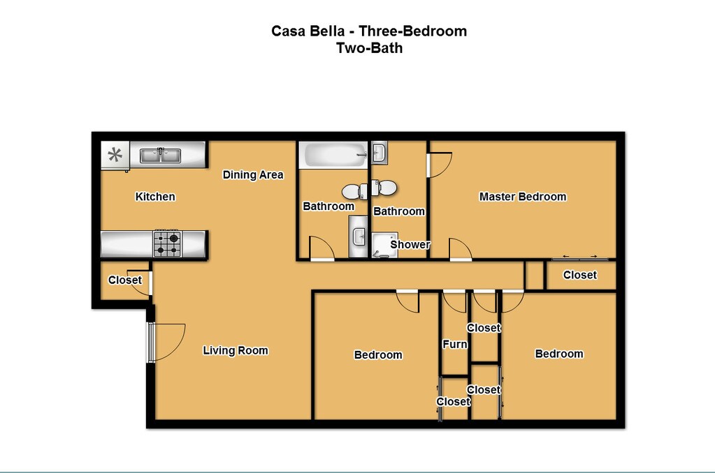 3 Dormitorios, 2 Baños, 916 pies²Galería del Modelo