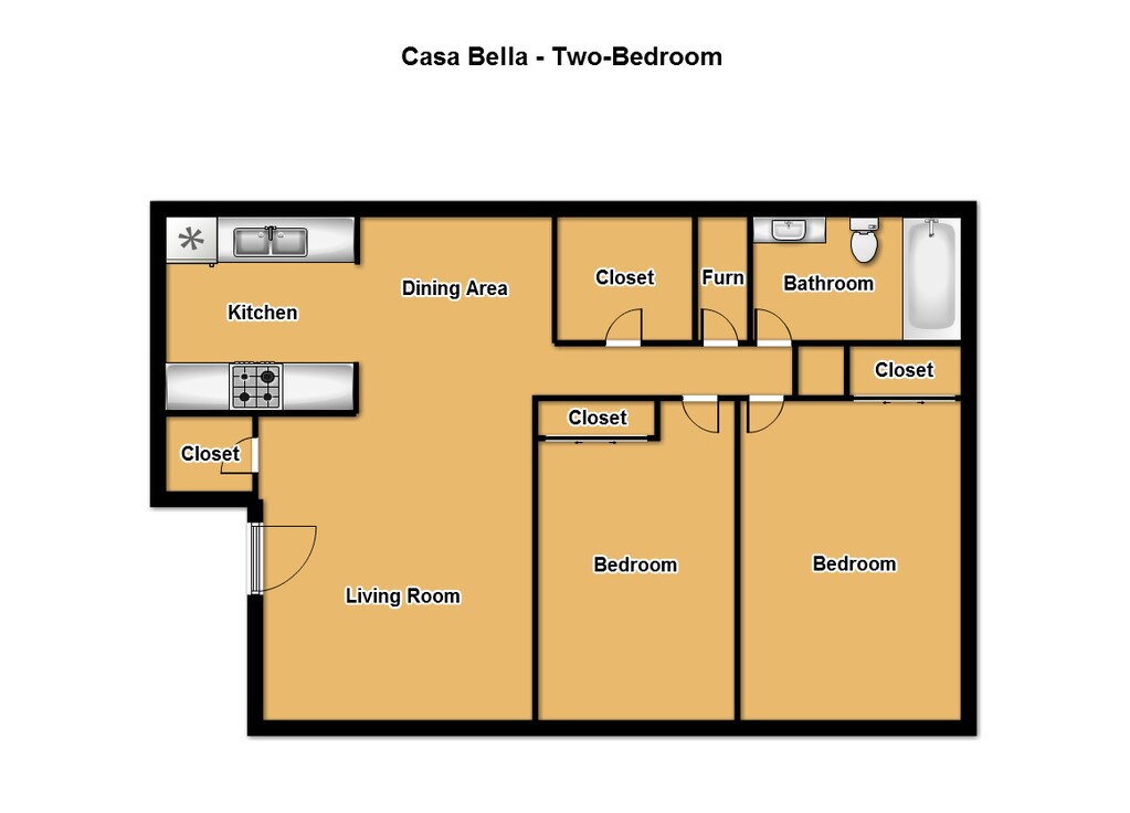 2 Dormitorios, 1 Baño, 736 pies²Galería del Modelo