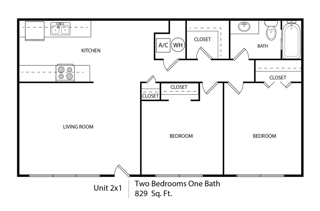 Modelo de apartamento: B2A$1,0752 Dormitorios, 1 Baño, 829 sq ftNo DisponibleLos planos de la planta son una interpretación artística. Todas las dimensiones son aproximadas. Los tamaños o el detalle del producto real y sus especificaciones pueden variar. No todas las características están disponibles en todos los hogares para rentar. Los precios y la disponibilidad están sujetos a cambios. El alquiler que se muestra es mensual. Se pueden aplicar ciertos cargos, por ejemplo, entrega de paquetes, recolección de basura, agua, servicios, etc. Depositos varian. Consulta a un representante para conocer detalles.