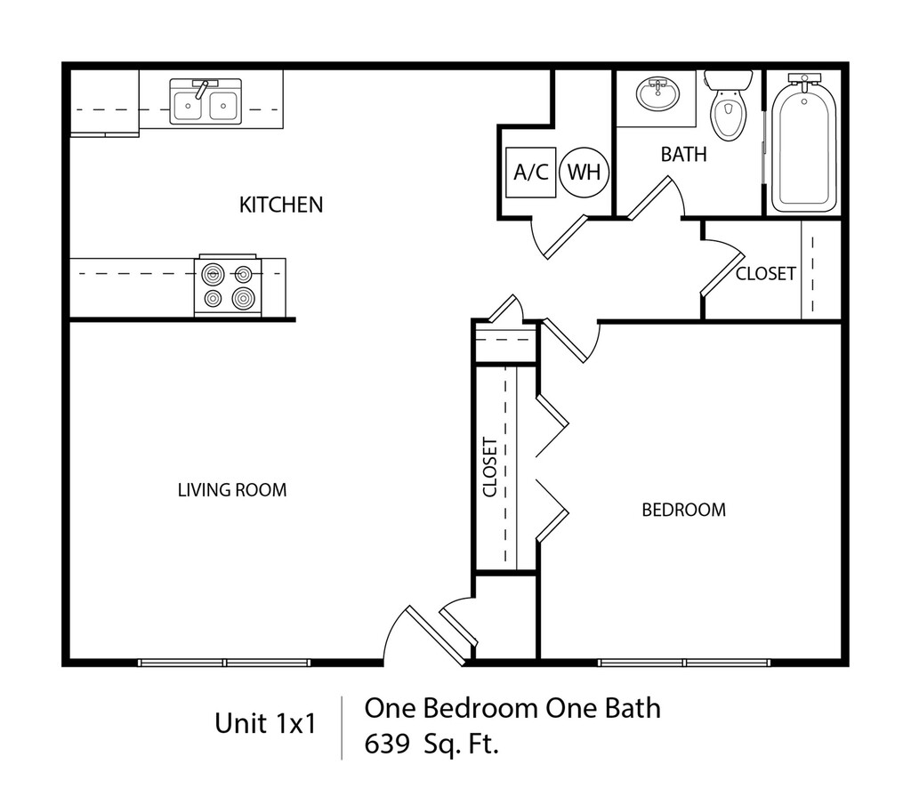 Modelo de apartamento: A1ADesde $9951 Dormitorio, 1 Baño, 639 sq ftDisponible AhoraLos planos de la planta son una interpretación artística. Todas las dimensiones son aproximadas. Los tamaños o el detalle del producto real y sus especificaciones pueden variar. No todas las características están disponibles en todos los hogares para rentar. Los precios y la disponibilidad están sujetos a cambios. El alquiler que se muestra es mensual. Se pueden aplicar ciertos cargos, por ejemplo, entrega de paquetes, recolección de basura, agua, servicios, etc. Depositos varian. Consulta a un representante para conocer detalles.
