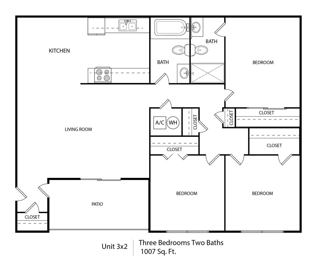 Modelo de apartamento: C2AR$1,5753 Dormitorios, 2 Baños, 1007 sq ftDisponible AhoraLos planos de la planta son una interpretación artística. Todas las dimensiones son aproximadas. Los tamaños o el detalle del producto real y sus especificaciones pueden variar. No todas las características están disponibles en todos los hogares para rentar. Los precios y la disponibilidad están sujetos a cambios. El alquiler que se muestra es mensual. Se pueden aplicar ciertos cargos, por ejemplo, entrega de paquetes, recolección de basura, agua, servicios, etc. Depositos varian. Consulta a un representante para conocer detalles.