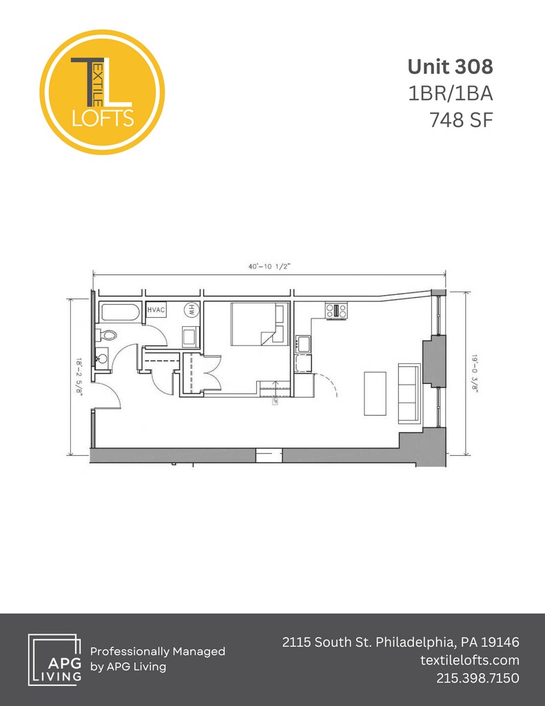 Ubicado en South Street, Textile Lofts es la mejor ubicación para tu próximo apartamento. Esta joya de 29 apartamento te impresionará con tus elegantes, modernas y detalles de metropolitanas, mientras mantiene la medida de matices históricos. Sal y descubrirás las exclusivas tiendas y excelentes restaurantes y lugares de vida nocturna de Graduate Hospital. Con acceso a y refugio del ritmo acelerado de la ciudad, tu Graduate Hospital, de apartamentos en Filadelfia le permitirá a cultivar el elegante estilo de vida urbano que siempre quisiste. El edificio es administrado por Alterra Property Group, LLC.