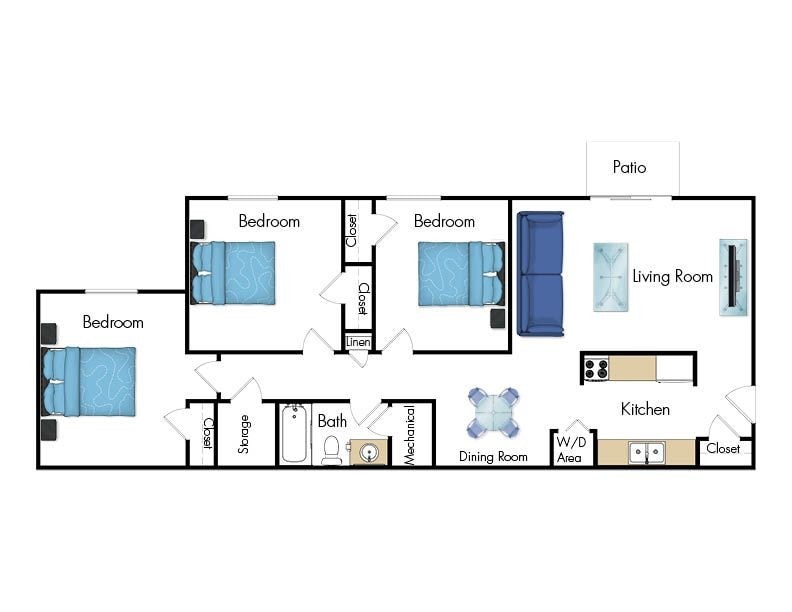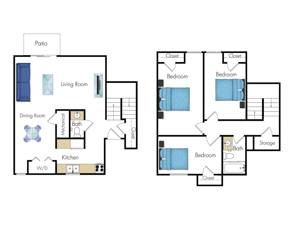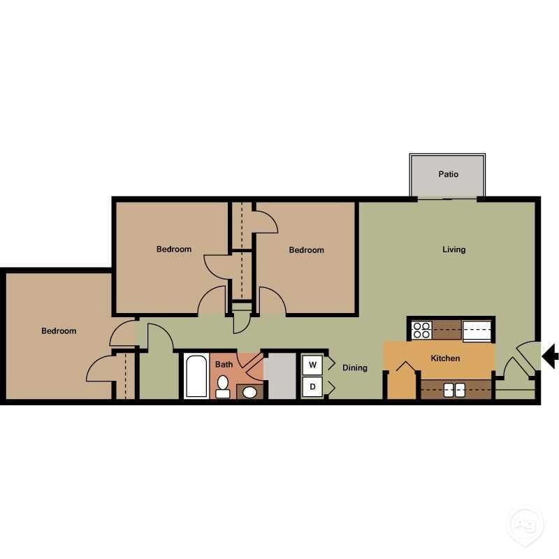 Modelo de apartamento: 3 Bedroom TownhouseDesde $1,3013 Dormitorios, 1.5 Baños, 1250 sq ftNo Disponible![]()
