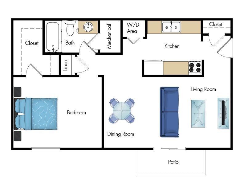 Modelo de apartamento: 1 Bedroom GardenDesde $9371 Dormitorio, 1 Baño, 860 sq ftNo Disponible![]()