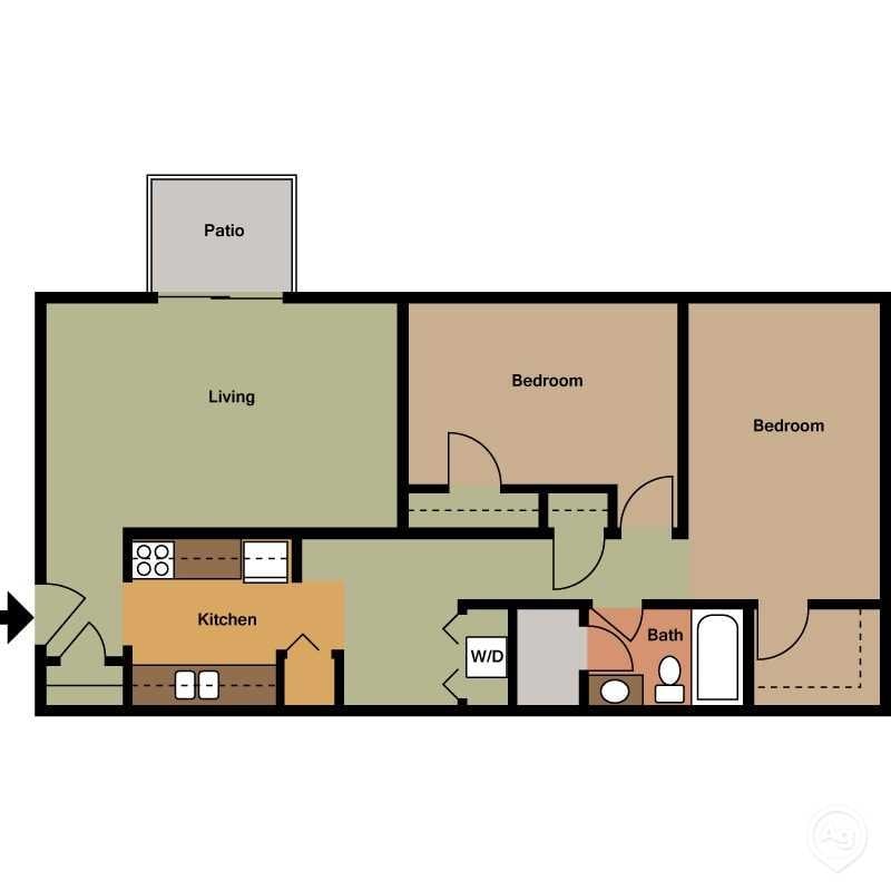 2 Dormitorios, 1 Baño, 1000 pies²Galería del Modelo