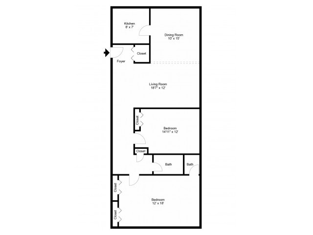 Modelo de apartamento: B2$1,9482 Dormitorios, 1.5 Baños, 1050 sq ftNo Disponible![]()