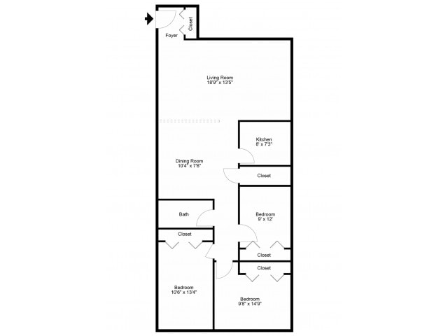Modelo de apartamento: C1$2,1453 Dormitorios, 1 Baño, 1200 sq ftNo Disponible![]()