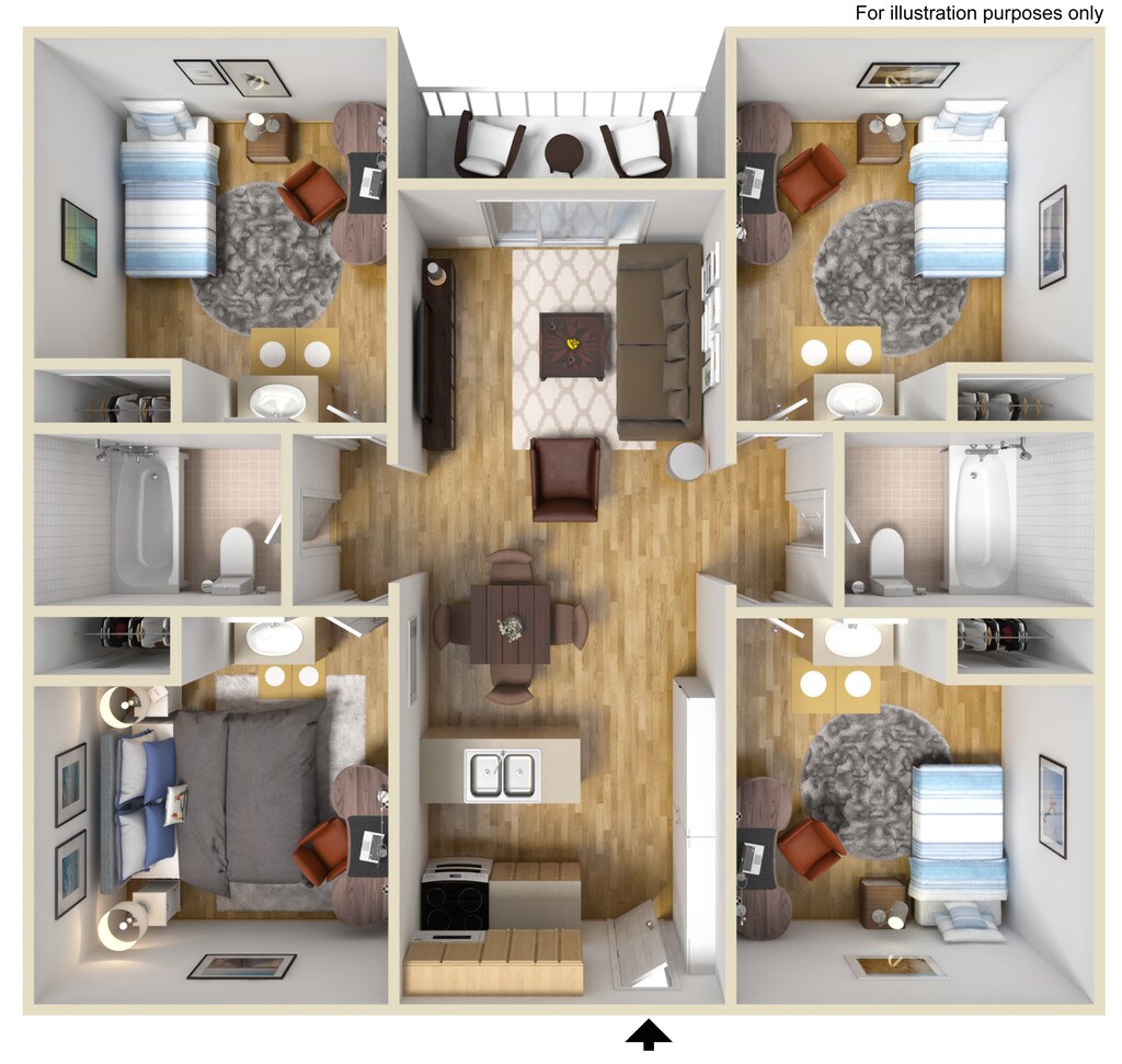 4 Dormitorios, 2 Baños, 1064 pies²Disponible AhoraGalería del Modelo