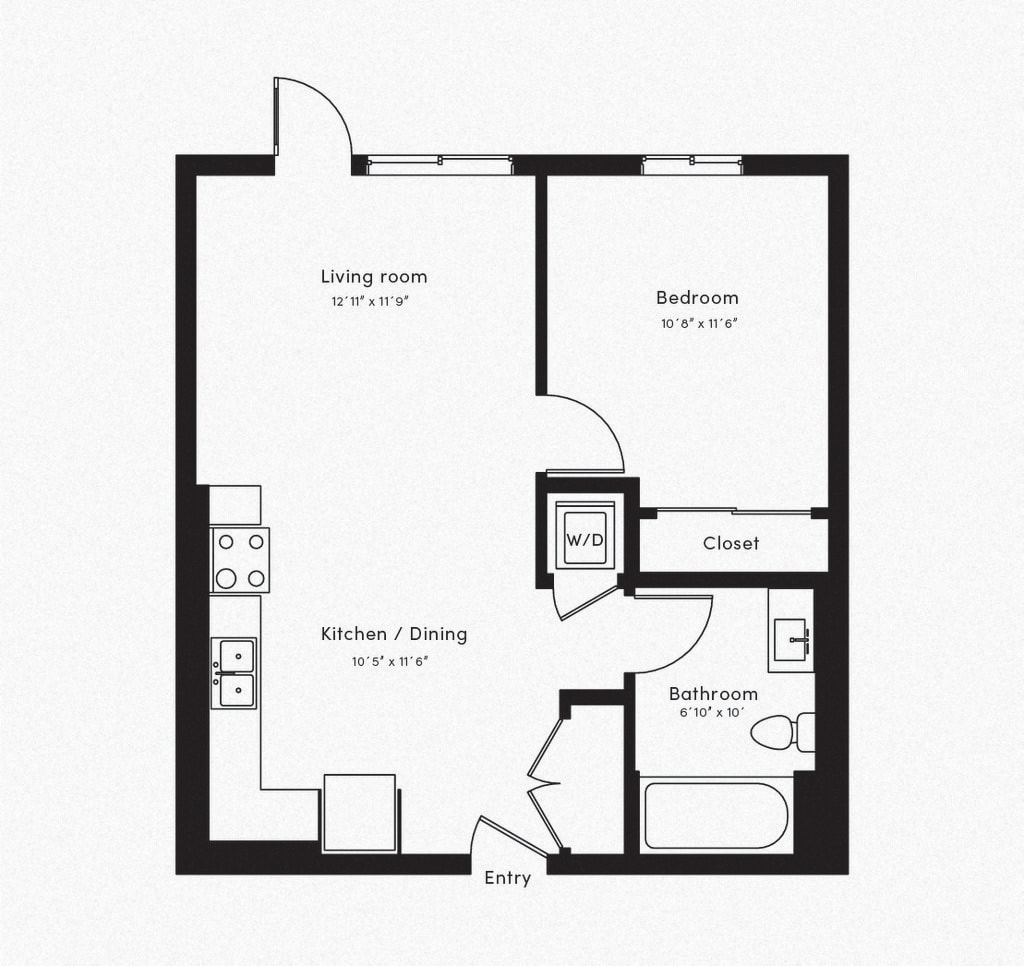 Estudio, 1 Baño, 428-693 pies²Disponible Feb 1Galería del Modelo